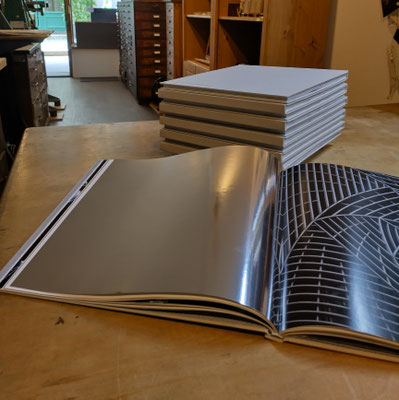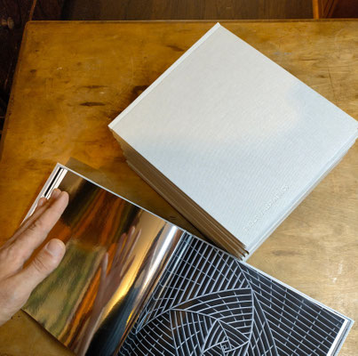 Die 10 Exemplare für eine Kunststudentin aus Mailand wurden in Handheftung gebunden, die Decke mit grauem Mattgewebe bezogen. Titelprägungen ergänzen das schlichte Äussere dieses Projektes. Betrachtet man nun die einzelnen Bilder, sieht man das Bild und auch sich selber im speziellen Glanzpapier ineinander verschwimmen.